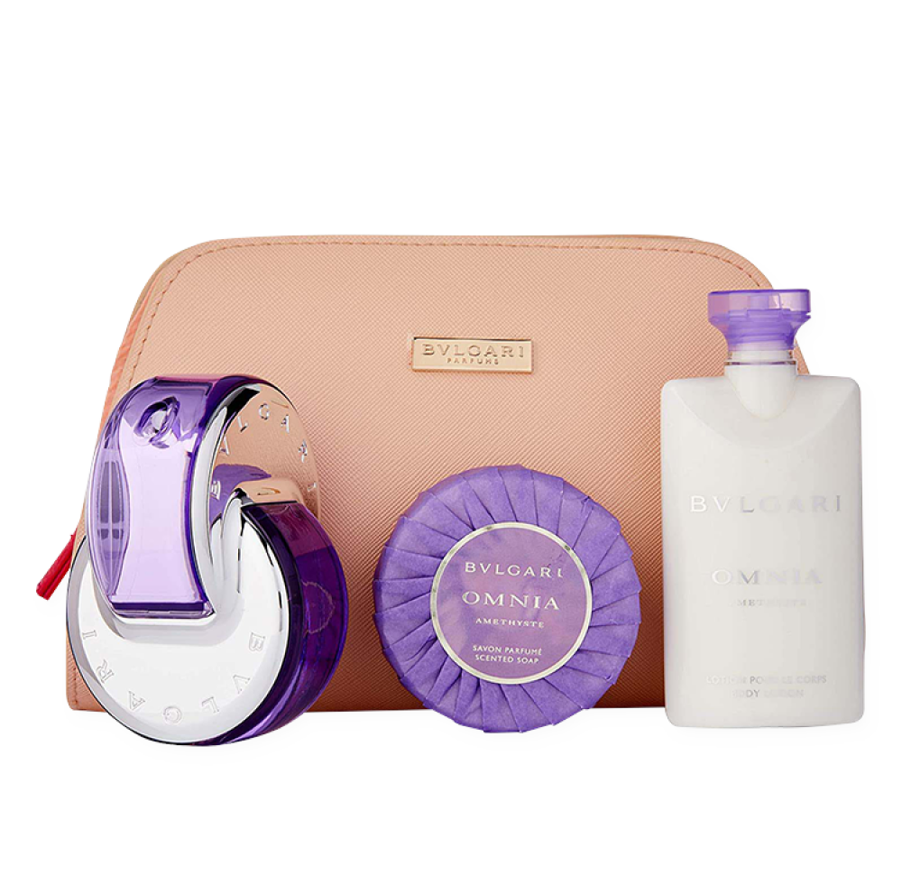 مجموعة عطرية للنساء تحتوي على عطر أساسي بحجم 65 مل مع 2 عبوة لوشن معطر للبشرة بحجم 75 مل وحقيبة مميزة لأدوات التجميل.